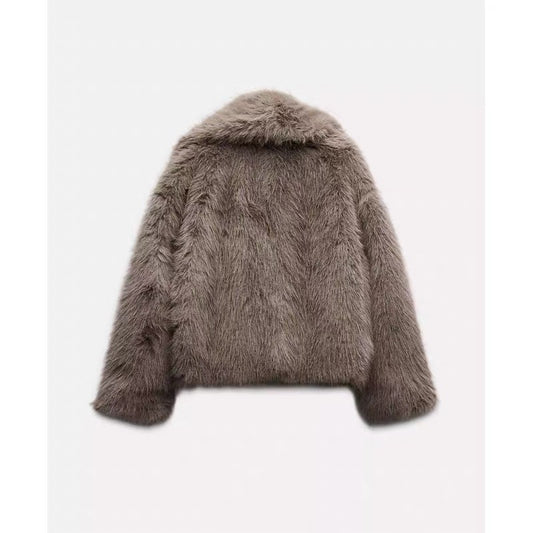 Brauner Kunstpelzmantel